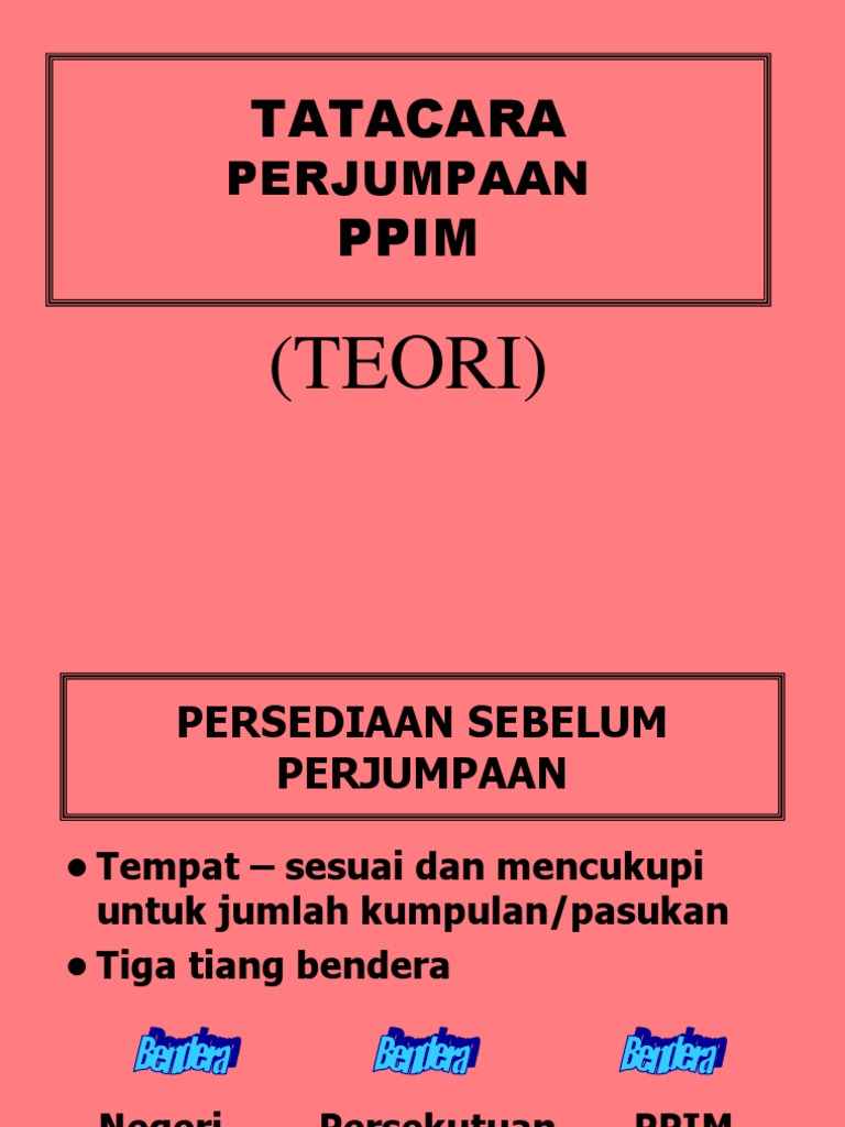 Bendera ppim berbentuk segiempat berwarna merah jambu. 1 di manakah ketua puteri berpusing sebelum berjumpa guru pemimpin bagi. Ucapkan Salam sambil bersalaman dan mohon.