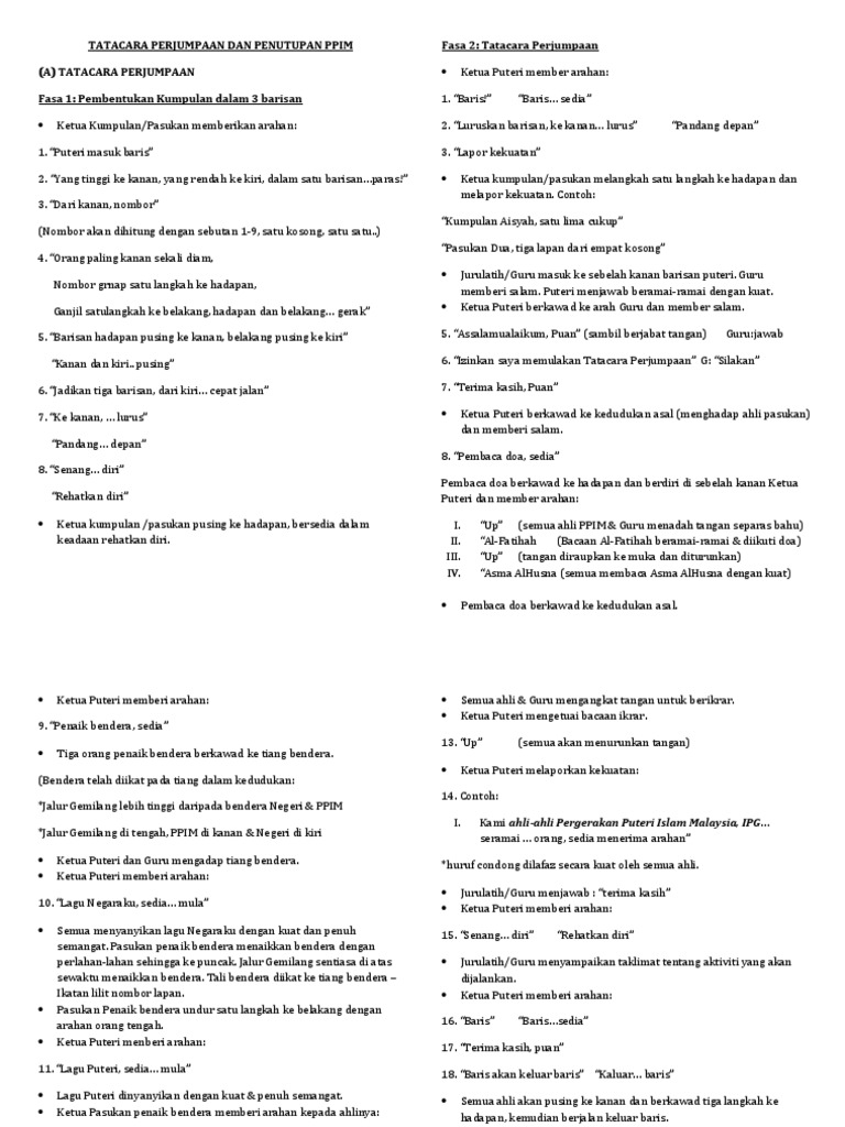 15 Ketua Puteri berkawad menemui Ketua Guru Pemimpin Guru Pemimpin. - Tatacara Perjumpaan Kedudukan Bendera Dalam Tatacara Perjumpaan. Up to 3 cash back Save Save Tatacara Perjumpaan Puteri Islam For Later.